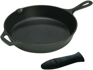 der!!ロッジ 30.4センチ キャストアイロンスキレット Lodge、ブラックシリコンハンドルホルダー付きロッジ キャストアイロン製 スキレット。直径約30.4センチ。ボーナス ブラックシリコン製ハンドルホルダー付き