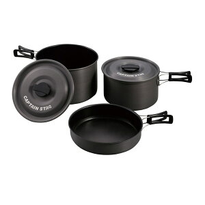 CAPTAIN STAG(キャプテンスタッグ)の一覧はこちら幅220×奥行220×高さ170mm重量170g材質:20cm鍋・18cm鍋:本体・ふた=アルミニウム(表面加工:表面=アルマイト加工、内面=ふっ素樹脂塗膜加工)・その他の材...