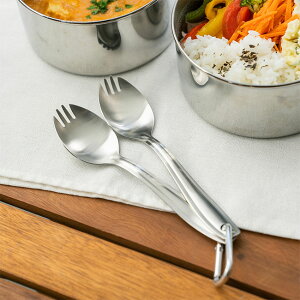 ◆持ち運びに適した軽量なステンレスカトラリーセット。◆カラビナ付きでザックやロープに吊り下げることができます。◆携帯しやすい軽量なアイテムは、野外活動に適します。