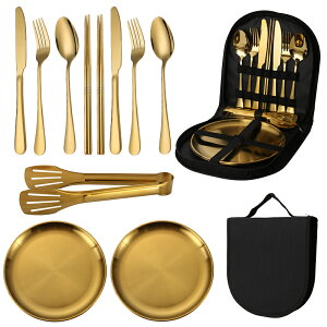 錆びたり割れたりせず、お手入れも簡単です。滑らかな縁は、日常の使用に適しています。 カトラリーセット:この携帯用キャンプ用カトラリーセットには、フォーク2本、スプーン2本、ナイフ2本、そして布製カバーが含まれています...