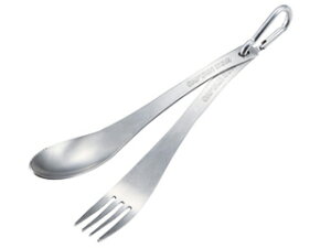 ロングハンドルスプーンとスポークの2点セット。付属のアダプターで接続してトングとしても使えます。 口当たりの良いマット仕上げ まとめやすいミニカラビナが付属 付属のアダプターで接続してトングとしても使えます セット内容:フ