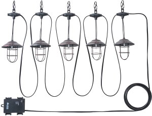 主素材:スチール、ABS 機能:テントやポールに吊り下げる5連タイプ。懐かしい雰囲気のレトロデザイン。 サイズ:(約)【ライト間】長さ70cm【電池ボックス→ライト】長さ300cm 総重量:(約)390g 常用点灯時間:(約)150時...