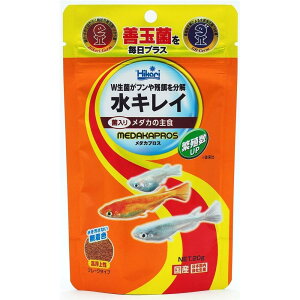 水の汚れを抑えるメダカ専用フレーク。W生菌(ひかり菌・GB菌)がフンや残餌を分解します。生きた菌の力で水とろ材の汚れを抑えます。水に沈みにくくメダカが食べやすいフレークタイプです。原材料:フィッシュミール、大豆ミール、で