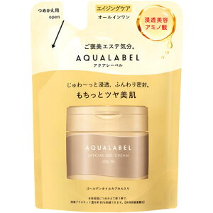 内容等予告なく変更する場合がございます。予めご了承ください。 商品名称 アクアレーベル スペシャルジェルクリームEX オイルイン つめかえ用 内容量 81g 特徴 ◆もちっとツヤ美肌 年齢を重ねた肌の