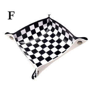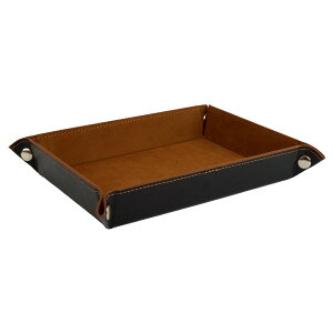卓上の小物をすっきり整理できるレザートレイ!おしゃれでクールな柄デザインのPUレザーを使用。四隅のボタンを留めるだけで組み立て簡単◎眼鏡・腕時計・アクセサリーの収納など使い方も色々!使用しない時は、ボタンを留めずに省ス