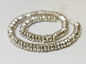 タイ北部やビルマの山村に暮らす山岳少数民族カレン族が作る、刻印が施された六角型のシルバービーズ一連です。ホワイトハート等のアクセサリーのワンポイントとして使うと、アクセサリーが一層引き立ちます。粒の大きさや孔径にはや