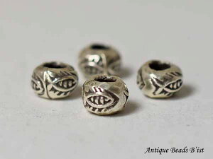 タイ北部やビルマの山村に暮らす山岳少数民族カレン族が作る、薔薇のような刻印が入ったシルバービーズ一連です。ホワイトハーツビーズ等との相性が良いビーズです。大きさや重量には若干の個体差があります。バラでご購入いただくよ