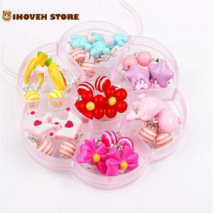 可愛いイヤリングおもちゃセット(7ペア+収納ボックス付き) 【豊富なデザイン&カラーバリエーション】 7種類のイヤリングがセットになった、キッズ向けイヤリングおもちゃ。スイカ・レインボー・アイス・リボンなど...