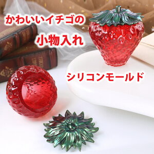 。いちごのヘタの部分が蓋になっている蓋つきの小物入れです。アクセサリー入れとしてもオシャレに仕上がります。UVレジン、エポキシ樹脂、樹脂粘土などに