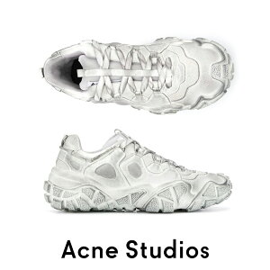 Acne Studios Bolzter Tumbled 男性用のスニーカー。 ホワイトの色合いで、ダメージ感のある仕上がりが特徴です。 メッシュ素材を使用し、スエードオーバーレイとチャンキートレッドソールを配したデザインです。 5....