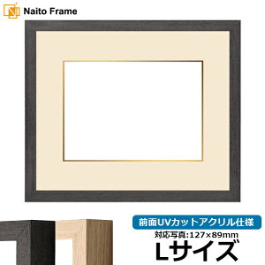 商品名 写真用額縁 LJ001 Lサイズ(127×89mm)専用 ブラック(01-1003WD)/木地(01-1002WD) 前面UVカットアクリル仕様 マット付き(金色細縁付き) 色 フレームカラー:ブラック/木地...