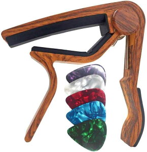 WINGOワンタッチギターカポタストエレキギター 、アコギ用カポ (木目カラー)-ピック5枚??クイックリリース:ギターでクリップするのが非常に簡単で、素早く交換できます。 曲の途中でキーを変更したり...