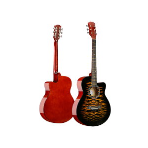 フォークギターのカッタウェイ サイズ: 38インチ パネル:バスウッド合板 モデル: QD-H38Q-S サイド&バック:バスウッド ネック:オーグ・ユム ナット:ABS 文字列: カラフルな文字列 ヘミング: ペイントエッジ バージ...