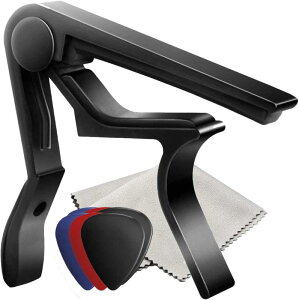 ワンタッチ ギター カポタスト ファイバークロス ティアドロップ タイプ ピック 6枚 フォーク エレキ クラシック アコースティック 黒 ブラック(1個)片手で操作できるので、ストラップでギターなど楽器...