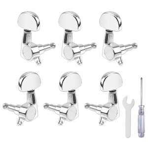 個のギター弦チューニング ペグ、ギター マシン ヘッド ノブ ツール (3 左 + 3 右) エレクトリックまたはアコースティック ギター用 (シルバー) (シルバー) 高品質素材: このギター弦チュ...