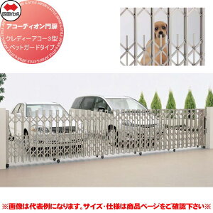 伸縮門扉 伸縮ゲート 両開き DIY アコーディオン門扉 エアリーナ。□ノンキャスタータイプのカーテンゲート。□車庫まわりの防犯対策にオススメ。国内有名メーカー三協アルミのカーゲート。
