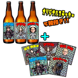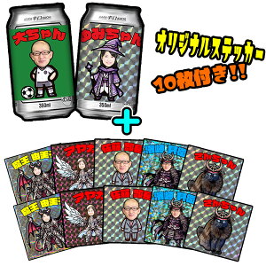 オリジナル写真ステッカーのビール 世界に一つだけのオリジナルステッカーを懐かしのデザインで作成します! お客様のお気に入りの写真を元に、当店が準備したキャラクターや、背景デザインを使用してビールのラベルと、おまけのシー