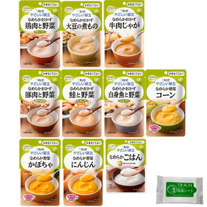 キューピーとアサヒの介護食シリーズから、区分4「かまなくてよい」おかずとスープが20種類含まれています。嚥下機能や咀嚼能力が低下している方でも安全に食べられるようにペースト状に加工されています。