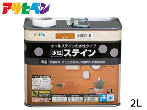 アサヒペン 水性ステイン オーク 2L 【特長】 ●浸透性に優れ、美しい木目に仕上がります。(特殊顔料使用) ●上塗りが不要です。そのまま仕上げることが出来ます。 ●保護の目的でラッカー系、ポリウレタン系ニスの上塗りも可能です...