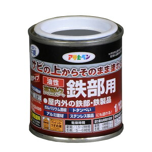 商品の特徴 ◆アサヒペン 油性・高耐久鉄部用 1/12L クロ サビの上からそのまま塗れる、サビドメ兼用の鉄部用塗料です。 屋内外の鉄部・鉄製品の上塗り兼用サビ止め。特殊防錆剤の配合により、サビを落とさずサビの上から直接塗れます...