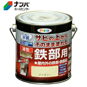 商品の特徴 ◆アサヒペン 油性・高耐久鉄部用 1.6L アイボリー サビの上からそのまま塗れる、サビドメ兼用の鉄部用塗料です。 屋内外の鉄部・鉄製品の上塗り兼用サビ止め。特殊防錆剤の配合により、サビを...