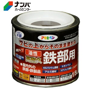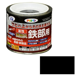 商品の特徴 ◆アサヒペン 油性・高耐久鉄部用 1/12L クロ サビの上からそのまま塗れる、サビドメ兼用の鉄部用塗料です。 屋内外の鉄部・鉄製品の上塗り兼用サビ止め。特殊防錆剤の配合により、サビを落とさずサビの上から直接塗れます...
