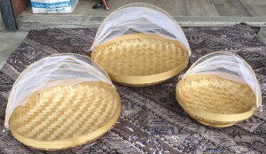 サイズ 直径:大−約34cm、中−約29cm。、小−約25cm。 材 質 竹・プラネット・金具 商品説明 インドネシア-バリ島でハンドメイドされている網付きの竹ざるです。 アミのカバーが開閉式になっていて、食品を害虫から守ったり屋外で...