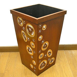 エスニックな雰囲気がお洒落な木彫りの収納ボックス、大きさ・重量的には傘たてに向いたタイプです。 周りにはリングを模ったアートな模様が2面に彫られていて、ゴールドやホワイトで装飾されています。 アジアンな彩りの中にも「和」