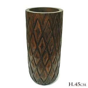 手彫りの落ち着いた雰囲気がお洒落な木彫りの傘立て 全体にひし形のダイヤ柄が細かく丁寧に彫られています。 店舗の入り口に置いてバリ風の傘立てとしても、ドライフラワーや デコレーションスタンドとしてリビングや玄関のインテリア