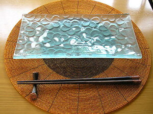 シャーベットブルーの淡い透け感が涼しげな フランジパニの長方形プレート。 裏一面にフランジパニのレリーフが施され、 その陰影がさりげなく、上品な仕上がりになっています。 和・洋・中どんなお料理も引き立ててくれます。 お刺身