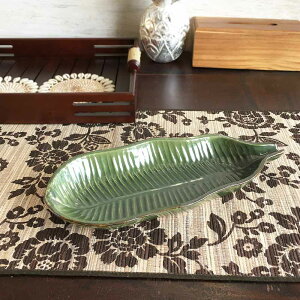 バナナ リーフ柄のプレートです。 南国テイスト演出にピッタリ。 食卓が楽しい雰囲気になります♪ 食器棚の中にあっても一際目を引く可愛さのデザインです。 ・サイズ W31cm×D13cm×H3cm...