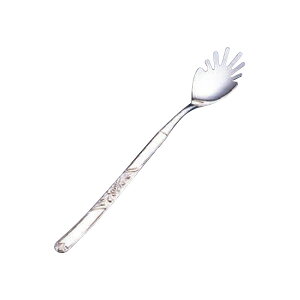 【全長】205mm×29mm ●V爪はカット機能、ツブシやヒッカケ機能を合わせ持つ形状です。 ●爪先端は丸く滑らかに仕上げてありますので安心です。 ●パスタ等の巻き上がりを防ぎ、先端部だけ巻けるので食べやすい。 ●スプーン機能も加え麺類