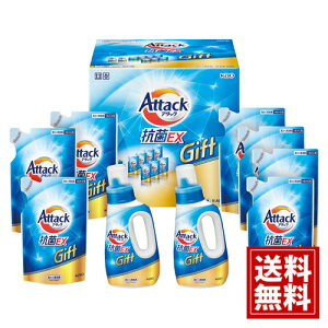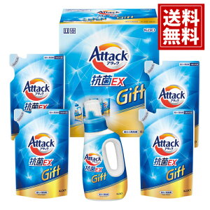 ぎゅうぎゅうつめこみ洗いでも強力洗浄の液体のアタックとキュキュットが入ったセット。 商品詳細 ●商品:アタック抗菌EX本体(750g)×1、アタック抗菌EX詰替用(590g)×1、キュキュットクリア除菌本体(220ml)×1...