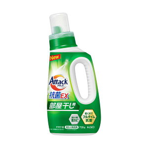 アタック抗菌EX 部屋干し用 洗濯用洗剤 本体 720g 生乾き臭の消臭力 超パワーアップ 高湿度90%の密集干しでも天日干し級に強力消臭 乾くまでフルタイム抗菌*2 洗たく槽防カビ ぶりかえすゾンビ臭も撃退へ