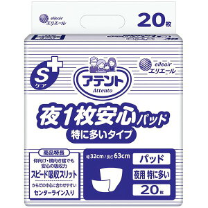 サイズ:特に多いタイプ(20枚)◆商品名:アテント Sケア 夜1枚安心パッド 特に多いタイプ 20枚 30×63cm テープ式用 【寝て過ごす事が多い方】【病院・施設用】〈医 療費控除対象品〉超スピー...