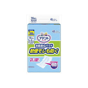 アテント お肌安心パッド 軟便モレも防ぐ 軟便200g 約4回吸収 16枚入。便をろ過する三層構造で、下痢や柔らかい便も吸収できる尿とりパッドです。尿も約4回分吸収できるます。
