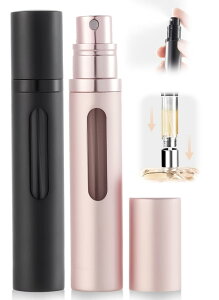 2本セット 簡単詰め替え 香水クイックアトマイザー旅行やお出かけに便利な、コンパクトサイズ10mlの機内持ち込みサイズで、金属製圧力バルブで空気圧変動による液漏れを防ぎます。香水ノズルに押し当てて補充するタイプで簡単に詰め替
