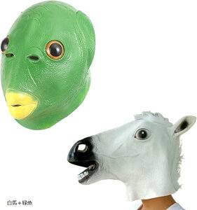 馬マスクと半魚人お面のセットです。ハロウィン・ハロウィーン仮装・イベント・パーティー・園祭り・仮装・変装などの大人同士・職場仲間・友人との飲み会の際のなど用途に応じて笑える仮装コスチュームとしての面白いどうぶつ仮装グ