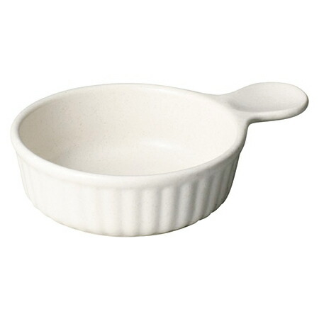 寒い季節に美味しいグラタンなどのオーブン料理。こちらは持ち手付きのデザインが可愛らしいグラタン皿です。小さめサイズなのでお子様用やグラタン、パン粉焼きなどを添えたい時に便利なサイズ。 また、クランブルなどのデザートにも