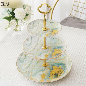 2段/3段 円形 セラミック ケーキスタンド デザート フルーツ プレート 波柄 アフタヌーンティー パーティー 結婚式 収納 おしゃれ デザート展示台 お菓子 陳列台