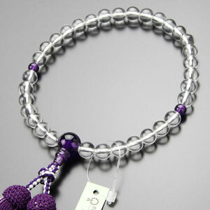 コメント 浄土真宗、女性用の正式なお数珠でございます。素材は、本水晶でございます。玉表面の磨きも丁寧で、艶があり、抜群の透明感でございます。アクセントには、2月の誕生石であります紫水晶を使用させて頂きました...