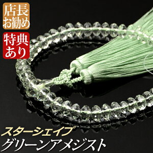 この商品の特典 商品について 素材 主珠:グリーンアメジスト(約9mm) 親珠:グリーンアメジスト(約12.5mm) 天珠:グリーンアメジスト(約7mm) 房 形 :正絹散華房 色 :若緑色...