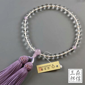 【宅配便 送料無料】女性用 数珠 本水晶 藤雲石仕立て 正絹房(房色・藤) 玉は無色透明で神秘的、古くから魔除けとしても使われてきた天然石【本水晶】 房は「頭付き 正絹シルク製」ですのでレーヨン房の様...