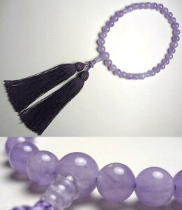 格調高い紫色の石を好んで身に着ける、という方には、別名・ライトアメジストとも呼ばれる藤雲石で作られたお数珠がお薦めです。紫色を帯びた藤雲石は、古くから数珠の材料によく使われていました。また、邪気から身を守るお守りとし