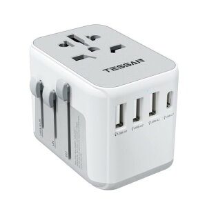 マルチ変換プラグ 1つUSB-Cと4つUSB-Aポート付き ヨーロッパ/韓国/オーストラリア/イギリス/アメリカ/中国などの国に対応海外旅行用コンセント