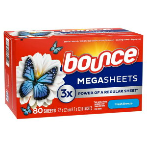 バウンス メガ ドライヤーシート フレッシュブリーズ 80枚入り バウンス フレッシュブリーズ メガドライヤーシートは、静電気防止、しわの軽減、柔らかさアップ、持続する香り、そしてホコリの防止が1枚で得られます。通常のシート3枚分