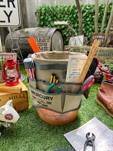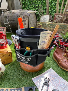 アメリカで売られてる一番ベーシックな5ガロンバケツに装着して使うバケツオーガナイザー、いわゆる道具入れです。 向こうのホームセンターに行くとこの手のオーガナイザーが売られてるんですが、それをマーキュリーが手がけてくれた