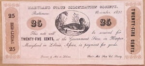 1837 25 CENT MARYLAND STATE COLONIZATION SOCIETY IN LIBERIA ~ AMERICAN SLAVERY商品について販売者メモ「メリーランド州ハーパー、リベリアにおいて、メリーランド...