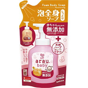 【商品詳細】 SARAYA arau アラウベビー 泡全身ソープ しっとり つめかえ用 880ml ・植物生まれのピュアな無添加せっけん成分で、すべすべお肌に ・赤ちゃんのための無添加 ・天然ハーブの...