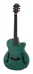マホガニーをくりぬいたボディにフレイムメイプルトップを組み合わせたエレクトリックアコースティックギター。55mm厚の取り回しの良いボディに、ギターの音色をよりはっきりと聴くことができるサイドサウンドホールを採用しています...
